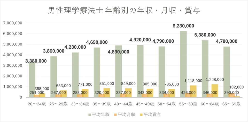 参考サイト:【2025年最新】理学療法士の年収・給料と高収入をめざす方法