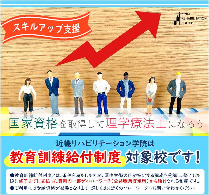 近畿リハビリテーション学院は教育訓練給付金制度の対象校です。社会人経験が有る方はハローワークでを申請することができます。